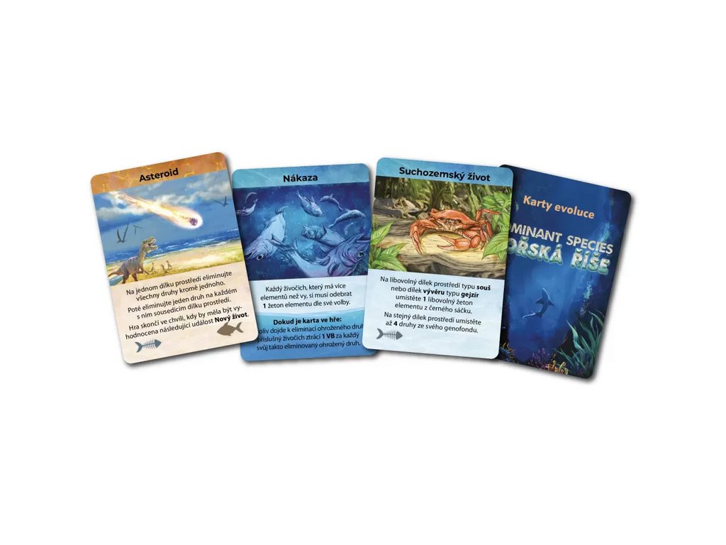 Dominant Species: Mořská říše je hra, ve které v abstraktním pojetí prožijete krátký úsek pradávné historie naší planety – konec jedné éry a jeho následky pro všechny žijící bytosti, snažící se adaptovat na pomalu se měnící nové životní podmínky v oceánech.