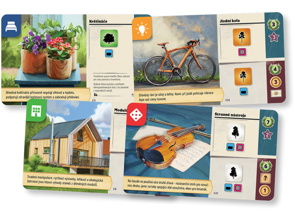Desková hra Letokruhy vás zavede do světa moderního lesnictví, kde se stanete hospodáři v evropských lesích. Vaším cílem nebude pouze těžit dřevo, ale především udržitelně hospodařit tak, aby les prosperoval i pro budoucí generace. Hra unikátním způsobem propojuje zábavu s odbornými poznatky – pravidla jsou obohacena o texty expertů z Fakulty lesnické a dřevařské ČZU v Praze, které vám přiblíží ekologický význam stromů i moderní zpracování dřeva.