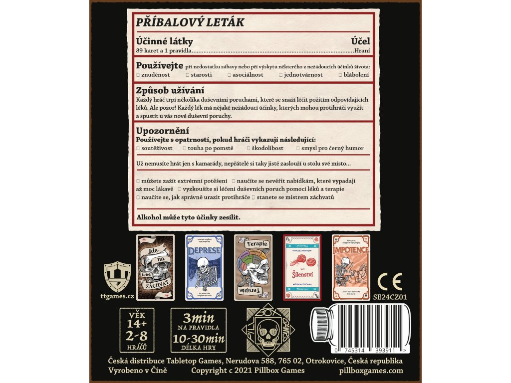 Hra pro 2–8 hráčů, kde každý začíná s přidělenými „nemocemi“ jako například Anorexie, Impotence nebo Sebevražedné myšlenky. Cílem je pomocí dobírání karet najít lék na tuto nemoc, jenže každý lék má také nežádoucí účinky. Například lék na impotenci může způsobit deprese – a tak se hráči často dostávají do neustále se měnících stavů, které jejich situaci komplikují. Protihráči navíc mohou na své soupeře zahrávat právě ty nežádoucí účinky nebo záchvaty, což zaručuje vysokou interakci a zábavu.