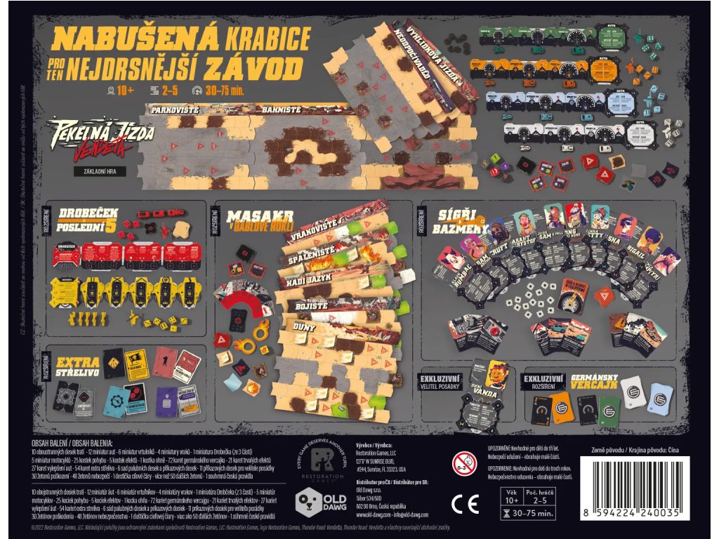 Budeš házet kostkou, závodit s auty, střílet ze zbraní a snažit se nehavarovat. Nová verze nabízí celou řadu vzrušujících libůstek od olejových skvrn, vraků a dalších, které si můžeš náhodně vytáhnout coby žetony poškození. Poškození bývá zřídkakdy jednorázové. Můžeš si také vylosovat žeton poškození, který tvoje auto pošle přes celou hrací desku.