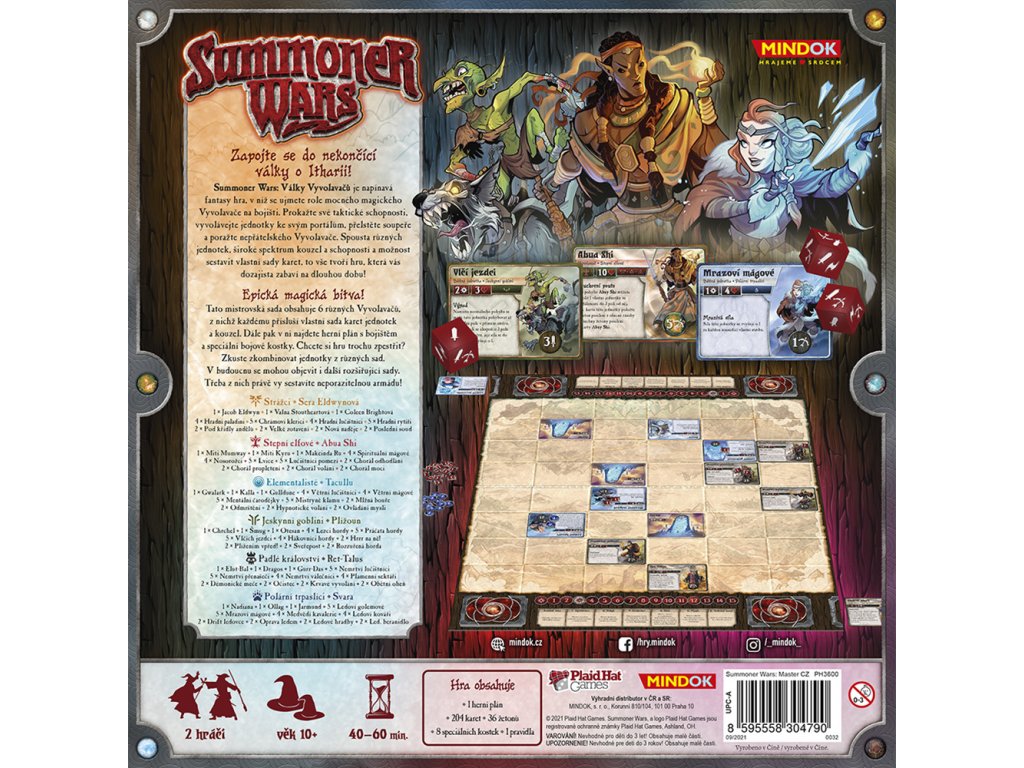 Summoner Wars: Války Vyvolavačů je napínavá fantasy hra, v níž se ujmete role mocného magického Vyvolavače na bojišti. Prokažte své taktické schopnosti, vyvolávejte jednotky ke svým portálům, přelstěte soupeře a poražte nepřátelského Vyvolavače. Spousta různých jednotek, široké spektrum kouzel a schopností a možnost sestavit vlastní sady karet, to vše tvoří hru, která vás dozajista zabaví na dlouhou dobu!